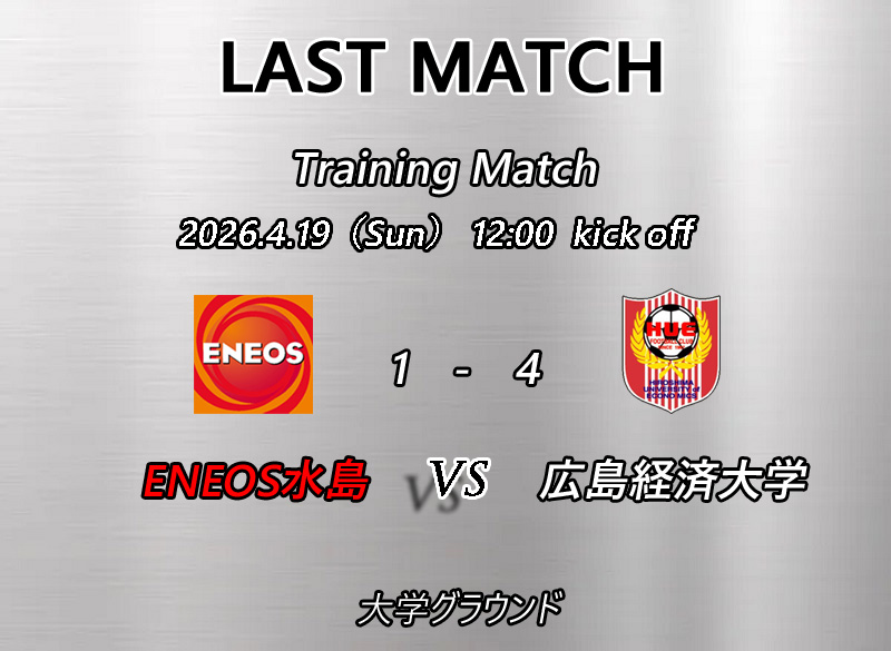 | 2026.4.19 Training Match 12:00 kick off vs 広島経済大学 (大学グラウンド) |