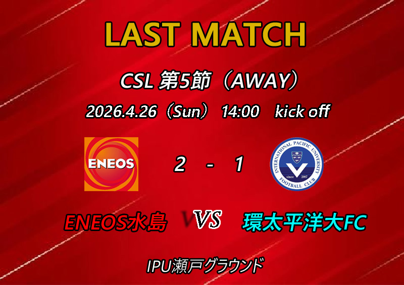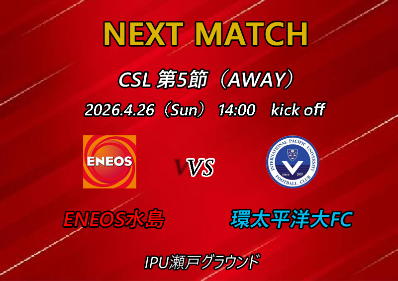 | 2026.4.26 CSL第5節 14:00 kick off vs 環太平洋大FC (IPU瀬戸グラウンド) |