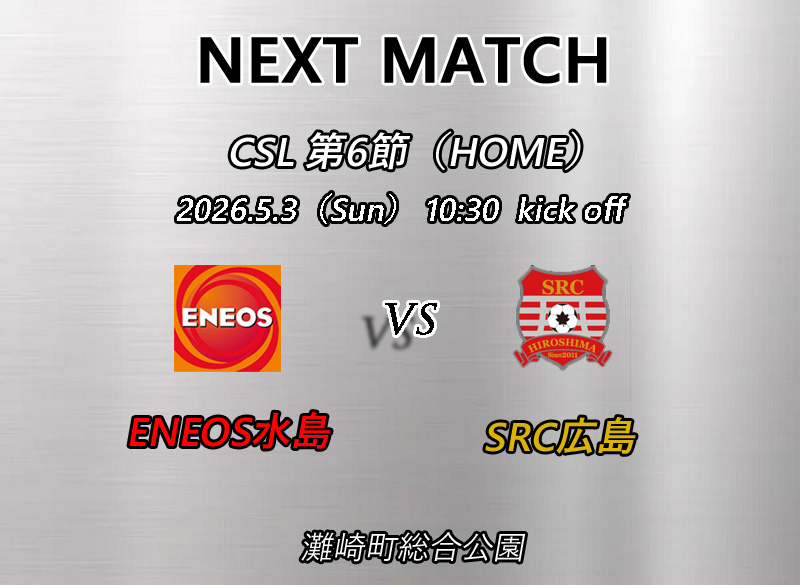 | 2026.5.3 CSL第6節 10:30 kick off vs SRC広島 (灘崎町総合公園) |
